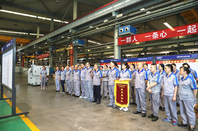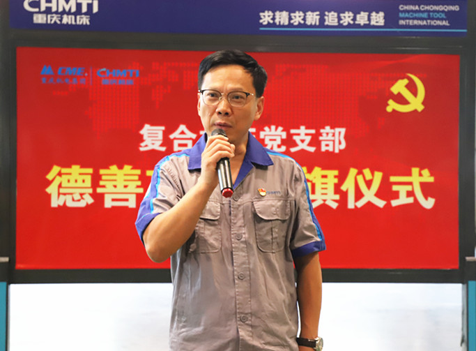 为激发党员和职工群众在生产组织、工艺保障、物资供应等重点环节中的攻坚热情,坚决打赢德善项目交付战,7月12日在复合机床事业部生产现场举行了德善项目党员突击队授旗仪式。机床集团党委书记、董事长刘德永、总经理衡德超亲临现场,党委副书记、纪委书记周玉红主持,复合机床党支部书记梅镇及全体党员、职工参加了授旗仪式。