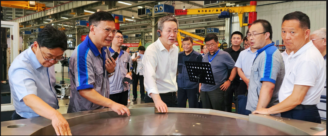 李仲平、谢建新、吴锋院士专家一行走访考察了企业生产现场及科研试验场地,听取了公司发展历程、技术沉淀与企业底蕴、产业方向、技术创新、科研项目等企业情况汇报,并详细了解了好博官网在工业母机、半导体加工设备和光伏成套设备等战略新兴产业的研发情况以及公司技术创新工作中遇到的问题。同时,刘董事长还向院士专家一行汇报了好博官网近年来就机床制造领域对材料的需求和面临的难题,充分利用了产业链上下游企业和高校等优势团队,通过深度的“产学研用”合作,开展了机床关键零部件材料应用等关键技术研究工作。