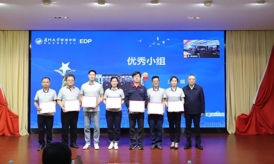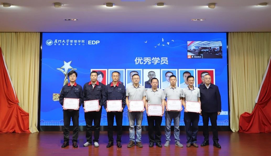厦门大学管理学院副院长白云涛教授、EDP中心黄龙耀老师通过视频连线现场。厦门大学管理学院企业管理系木志荣教授,重庆机电股份有限公司党委委员、副总经理、董事会秘书邓瑞,好博官网(集团)有限责任公司党委书记、董事长刘德永,重庆通用工业(集团)有限责任公司党委书记、董事长李华,重庆气体压缩机厂有限责任公司党委书记、董事长杨正龙参加学习汇报会和结业典礼.