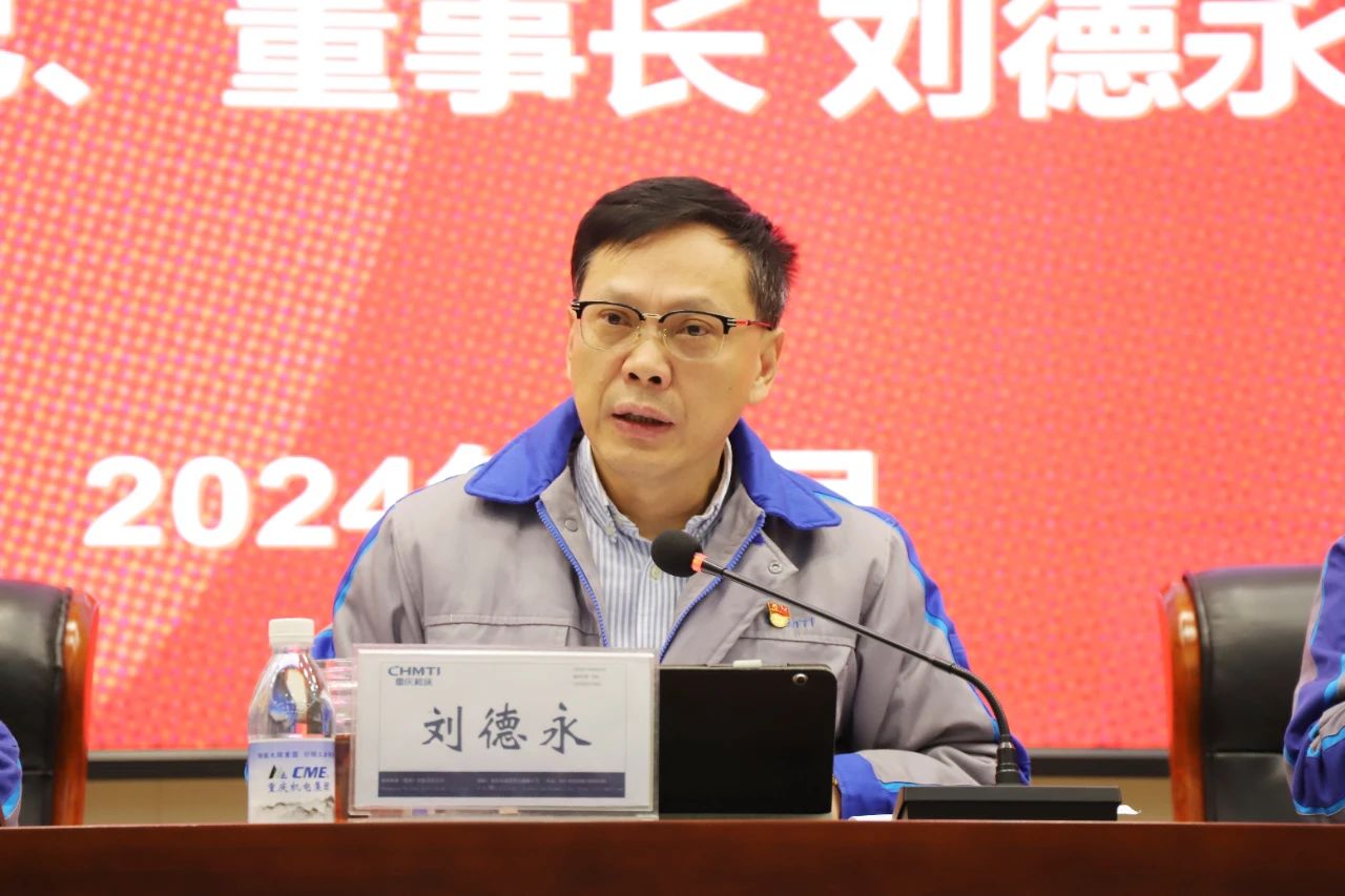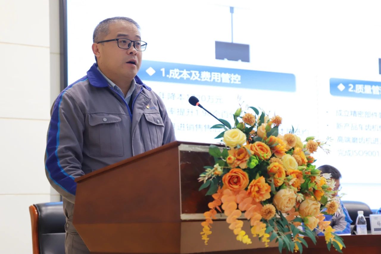 党委书记、董事长刘德永肯定了公司一年来取得的成绩,2024年紧盯热点市场,快速响应客户需求,针对不同用户分类施策,大力实施精密部件产品化,形成了与客户共同开发产品的新模式,全年新增订货同比增长33%,10月新增订货超2亿元创单月历史新高,新产品车齿机实现批量订货,各项经营指标持续改善,取得了全面攻坚胜利。同时,分析了存在的不足与差距,并对做好2025年工作提出要求: