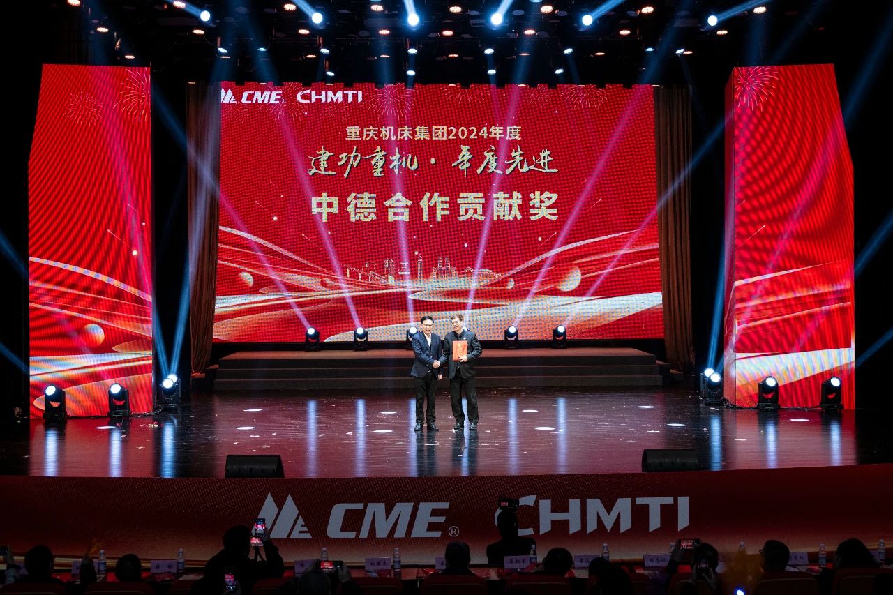 现场发布了好博官网集团2024年“十件大事”,表彰了2024年度成长新星、优秀员工、先进班组、优秀管理工作者、优秀项目总工程师、先进单位及重机标兵,并为合作伙伴恒翼通公司颁发了优秀战略合作奖、KAPP公司颁发了中德合作贡献奖。