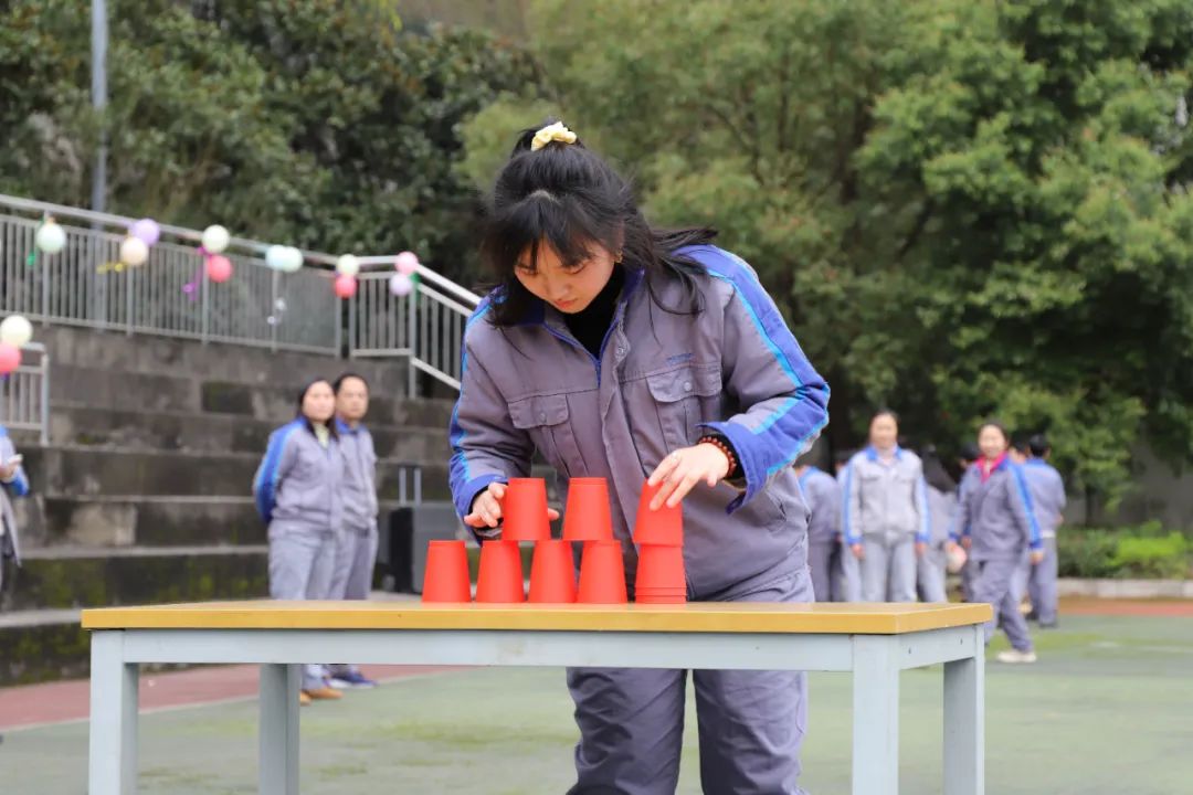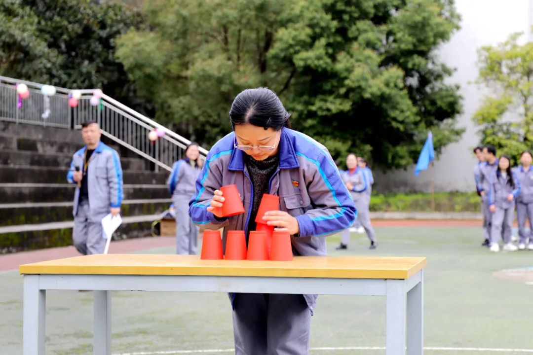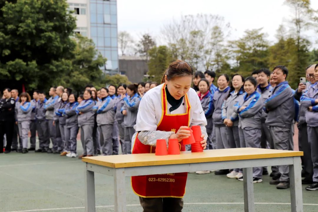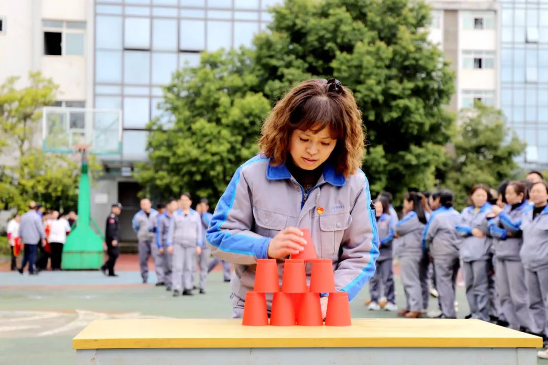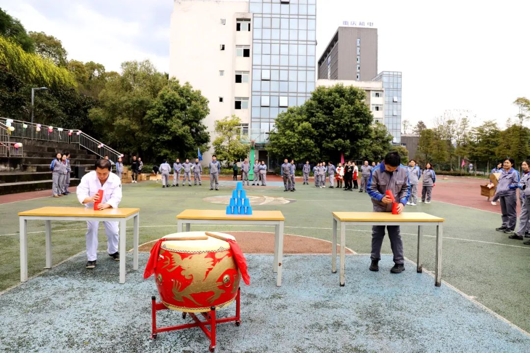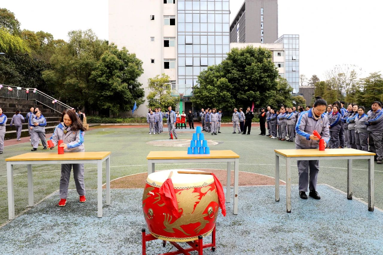 3月6日,活动在一片欢声笑语中拉开帷幕。此次活动内容以接力对抗方式进行,将纸杯搭成三角塔停留2秒后,收回纸杯初始状态,队员跑回起点,接力下一位队员,以此类推进行比赛,最后一位队员在将纸杯搭成三角塔并收回到初始状态后,敲响战鼓视为完成比赛。比赛中,大家场上奋力拼搏、团结合作、勇夺第一,场下笑语连连,掌声阵阵,充满了和谐友爱的气氛。